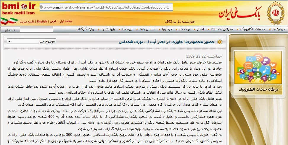 لینکهای مربوط به گزارش دیدار محمودرضا خاوری با میرزا حسینعلی نوری همدانی در سایت فارس نیوز و سایت رسمی بانک ملی ایران به شرح زیر است: